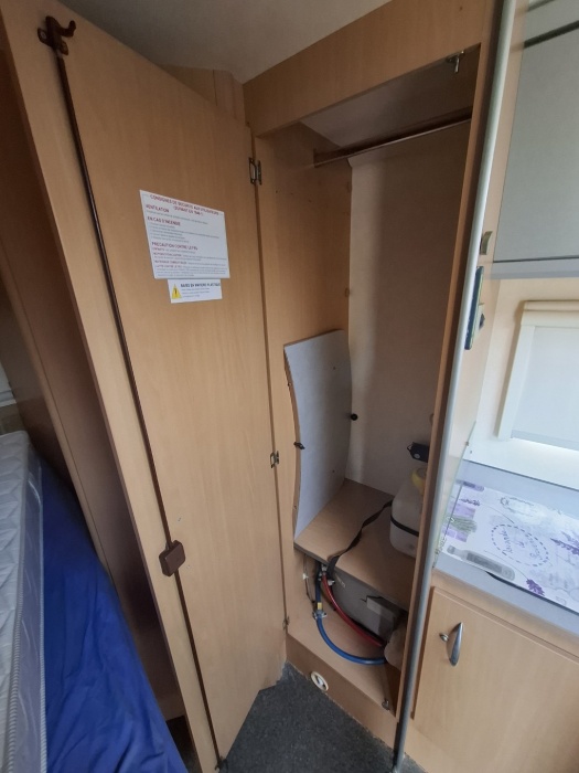 Il est équipé d'un porte vélo, 3 bouteilles de gaz et de rideaux intérieurs à chaque baie.